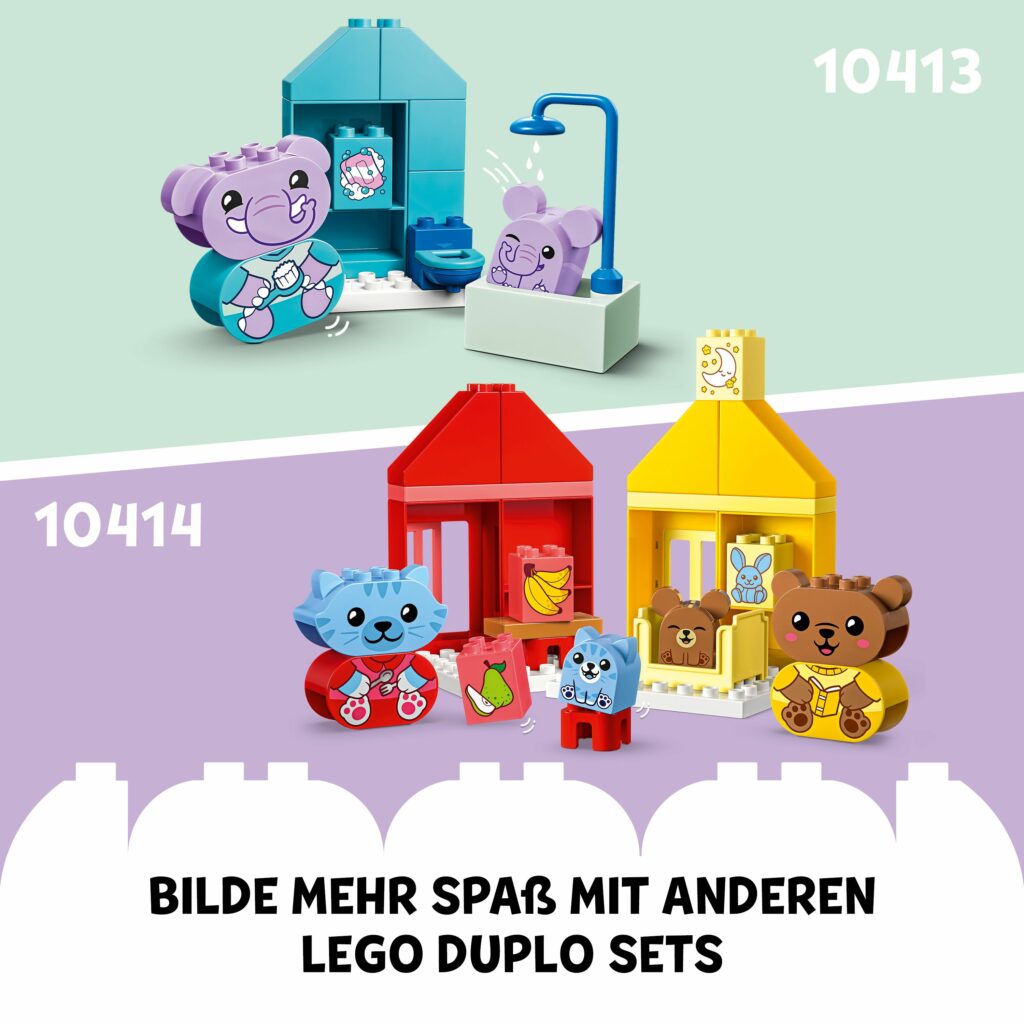 LEGO® DUPLO® Alltagsroutinen: Essen & Schlafenszeit (10414); Spielzeug für Rollenspiele zur Förderung der sozialen und emotionalen Entwicklung; 4 Tierfiguren, die zwei Familien darstellen; Geschenk für Vorschulkinder ab 18 Monaten; lässt Kleinkinder die eigenen Gefühle entdecken
