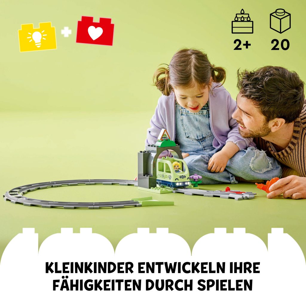 LEGO® DUPLO® Town Eisenbahntunnel und Schienen – Erweiterungsset (10425); Geschenk für Kleinkinder; fördert die Fingerfertigkeit; Spielset für Fahrzeugfans ab 2 Jahren