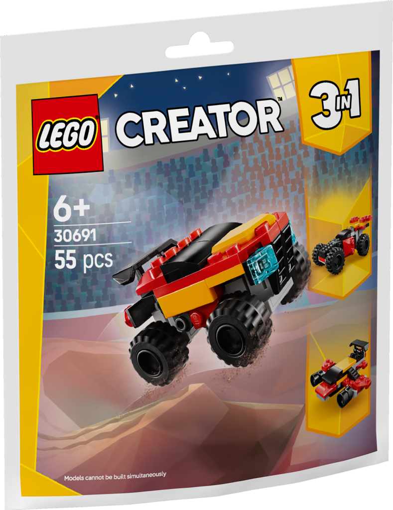 Überrasche einen Autofan mit dem Mini-Monstertruck aus diesem tollen 3-in-1-Set zum Spielen und Ausstellen. Der Monstertruck kann auch in kleines Rennauto oder in einen kleinen Flieger umgebaut werden.