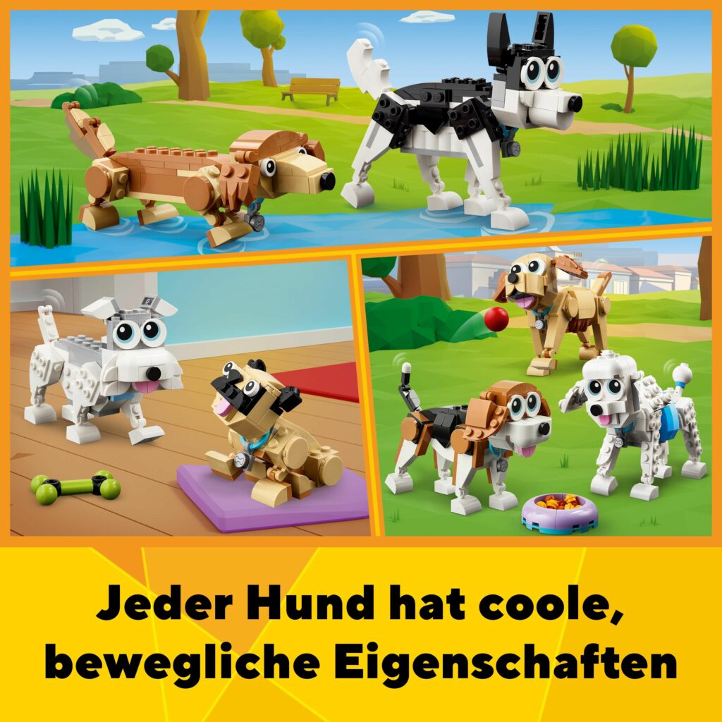 LEGO® Creator Niedliche Hunde (31137); Bau- und Spielset mit Beagle, Pudel, Mops, Schnauzer, Dackel, Husky und Labrador; Geschenk für Hundeliebhaber und Kinder ab 7 Jahren, die gern fantasievoll spielen (475 Teile)