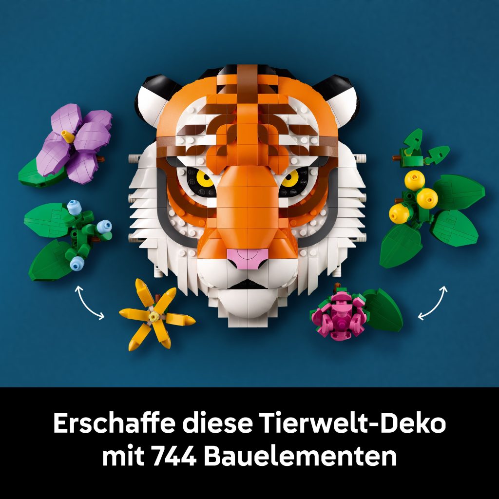 LEGO® Art Fauna Collection – Tiger (31217); Geschenk zur Einweihungsparty; Schreibtisch-Deko mit Blumen; Bauset für Erwachsene; baubare Wandkunst für Tier- und Naturfreunde