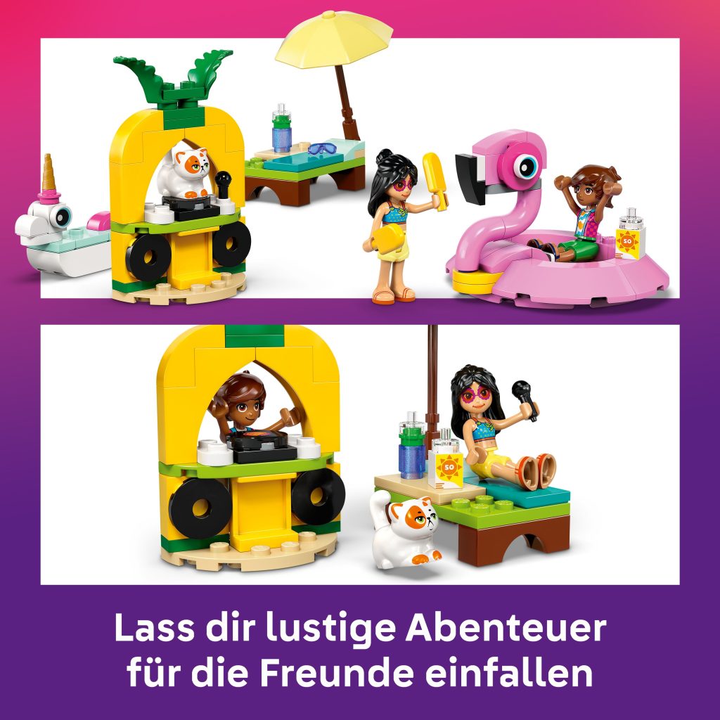 LEGO® Friends Poolparty mit Einhorn und Flamingo (42658); Bauset für Rollenspiele; Spielset für Mädchen und Jungen ab 5 Jahren; baubare Schwimmtiere, 2 Spielfiguren und eine Katze