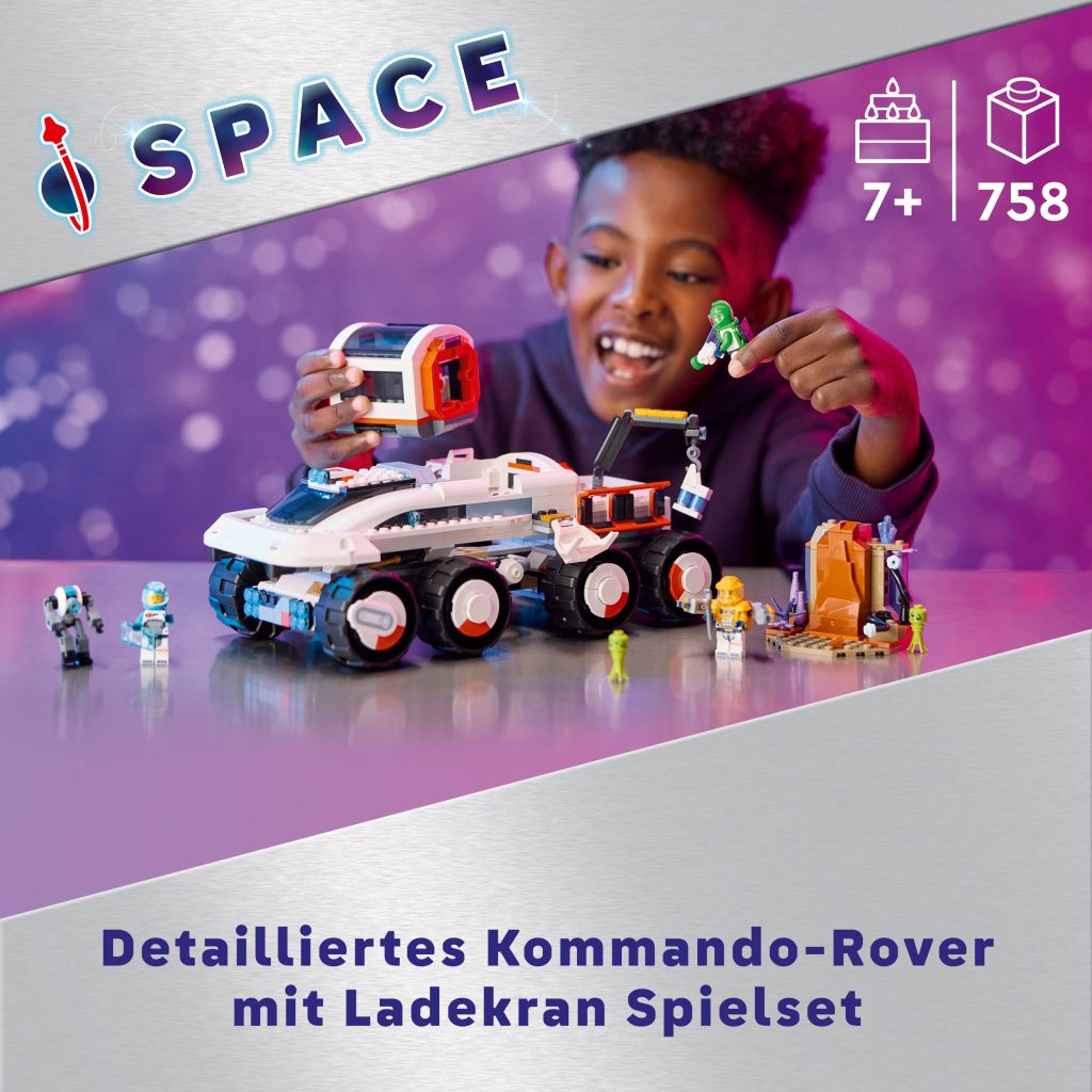 LEGO® City Kommando-Rover mit Ladekran (60432); Weltraum-Spielzeug; Bau- und Spielset; Geschenkidee für Kinder ab 7 Jahren; 4 Astronaut-Minifiguren, ein Roboter, 2 Alien-Actionfiguren und eine Planetenkulisse