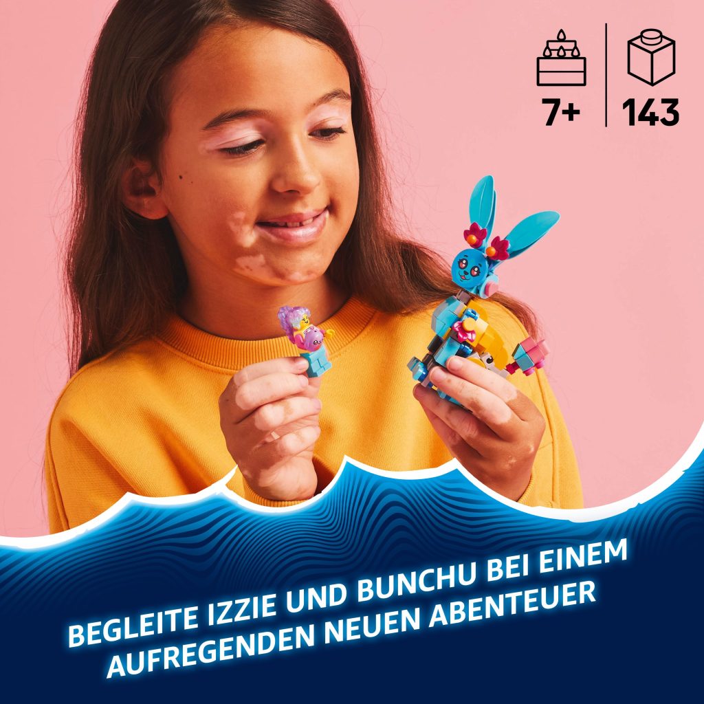 LEGO® DREAMZzz™ Bunchus kreative Tierabenteuer ist ein Bauset, das Kinder die Heldin Izzie und ihren niedlichen Hasen Bunchu auf spannende Abenteuer begleiten lässt. Baue die niedliche Bunchu-Figur und verwandle den Hasen dann in fantasievolle andere Tiere. 19 weitere coole Bauoptionen stehen zur Wahl, unter anderem ein Löwe, eine Schildkröte, ein Hirsch, ein Schmetterling und eine Libelle!