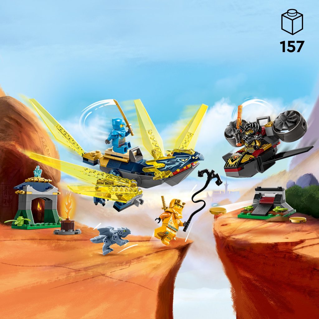 LEGO® NINJAGO® Duell zwischen Nya und Arins Babydrachen (71798); Bau- und Spielset; beinhaltet einen Jet, einen Drachen, 3 Minifiguren und Baby Riyu; Geschenkidee für Kinder ab 4 Jahren; bringt Kindern das Bauen und das Darstellen von Actionszenen bei (157 Teile)