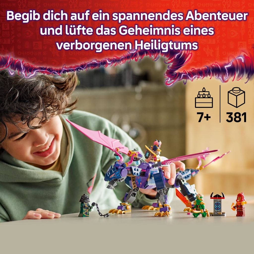 Begib dich auf eine waghalsige Mission mit den Ninja, um das Geheimnis eines Schreins zu lüften. Verbünde dich mit Sora, Wyldfyre, Lloyd und Rontu dem Meisterdrachen, um an Zarkt, dem bösen Meister des Unglücks, vorbeizukommen, der den Schrein bewacht. Greif mit Rontus Shootern aus der Luft an oder benutze am Boden die coole Ausrüstung der Ninja. Die Ninja müssen unbedingt gewinnen.