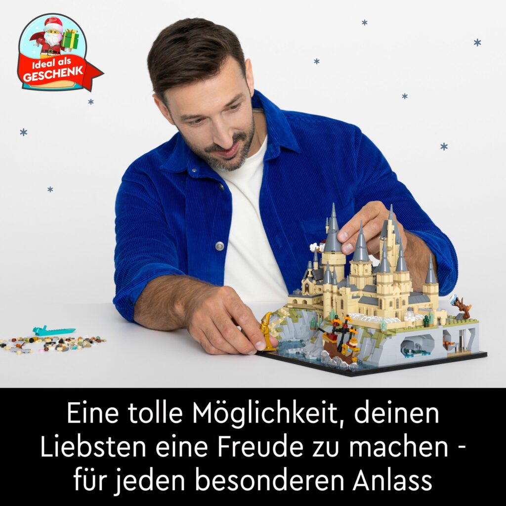 Freu dich auf ein ebenso magisches wie kreatives Erlebnis mit dem ersten LEGO® Modell von Schloss Hogwarts™ mit Schlossgelände. Baue unter anderem den Hauptturm, den Astronomieturm und die Große Halle. Erkunde legendäre Räume wie die Kammer des Schreckens und das Klassenzimmer für Zaubertränke. Füge die Minifigur des Architekten von Hogwarts, das Durmstrang-Schiff und weitere unverwechselbare Modelle hinzu, um das zauberhafte Ausstellungsstück zu vollenden.
