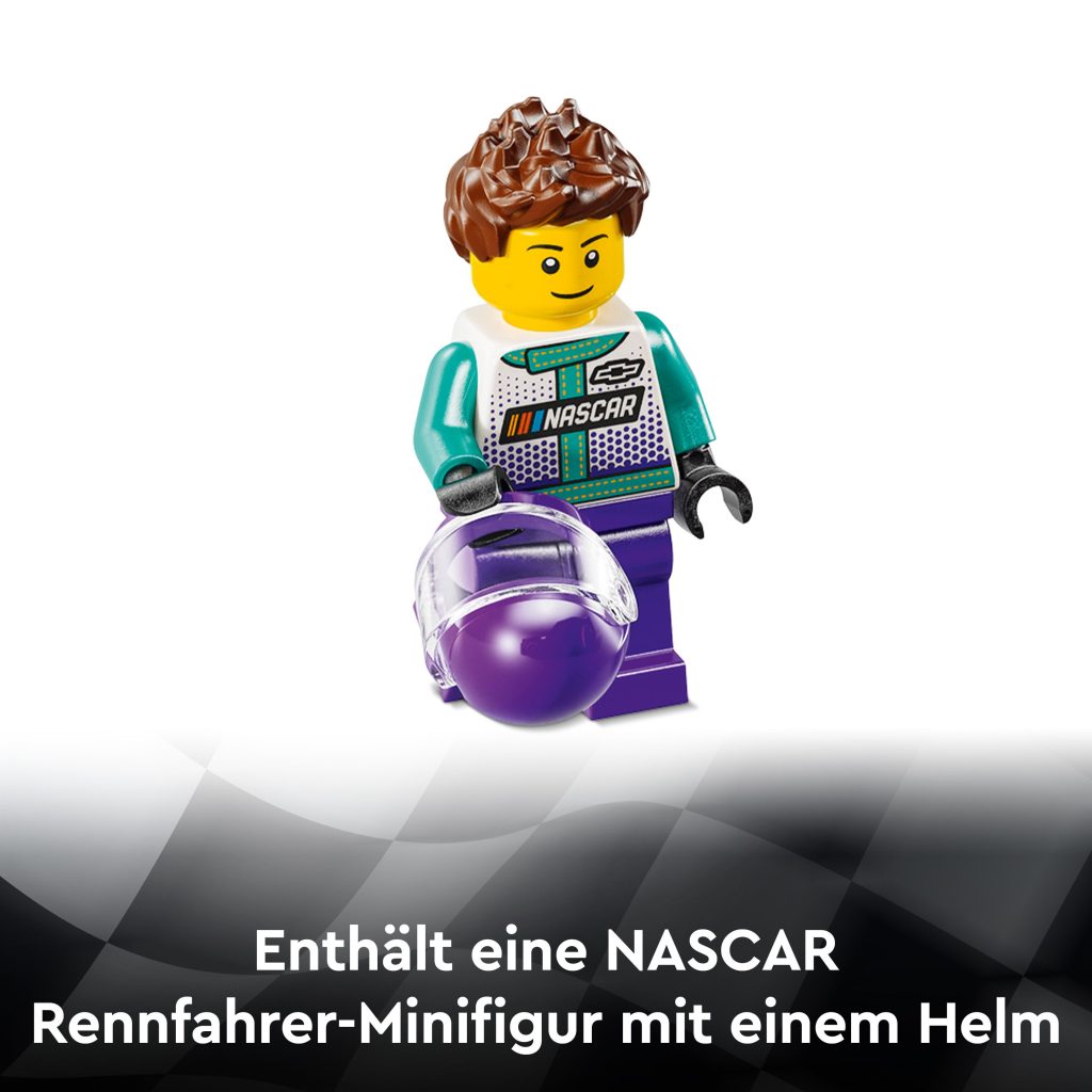 Freu dich auf spannende Rennen in der NASCAR® Cup Series mit diesem NASCAR Next Gen Chevrolet Camaro ZL1! Diese LEGO® Speed Champions Nachbildung hat viele authentische Details des Originals. Das Spielset beinhaltet auch eine NASCAR Rennfahrer-Minifigur mit Helm, die du in packende Rennen schicken kannst.